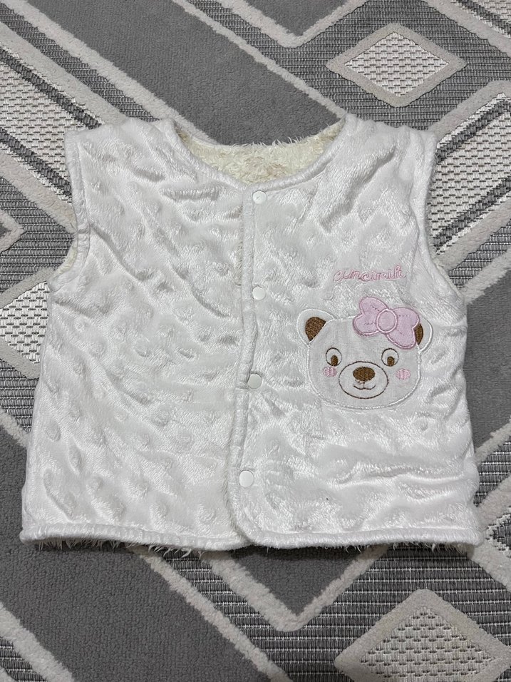 Düğmeli Kız Çocuk Beyaz Nakışlı Yelek