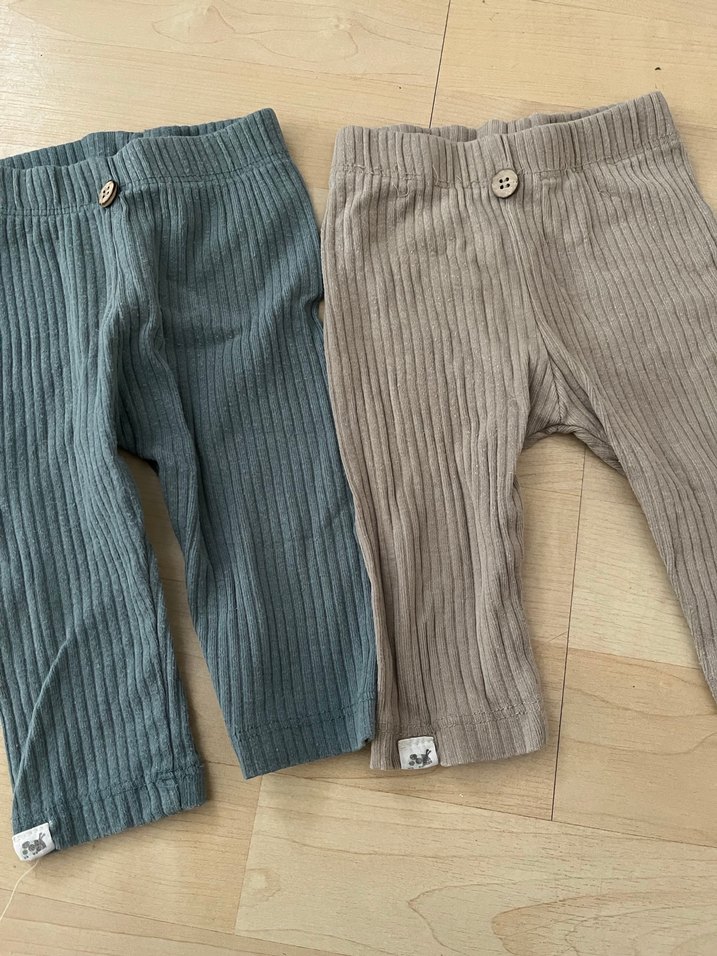 Yumuşak pamuktan, düğme detaylı ve kabartmalı dokuda, bol kesim kız çocuk taytları. Kahverengi ve gri renklerde, desensiz ve sade tarzda.
