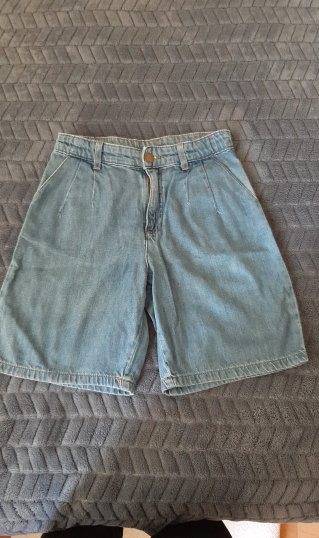Düğmeli, kısa mini boy bol kesim kız çocuk denim şort. Günlük kullanıma uygun normcore tarzda.