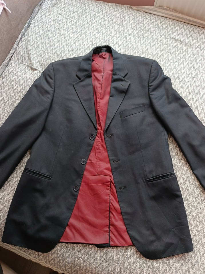Düğmeli, klasik kesim içi bordo lacivert erkek takım elbise ceketi. Uzun kollu, normal boyda, desen içermeyen ofis şıklığına uygun bir modeldir. ️