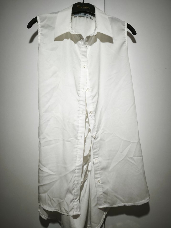 Düğmeli Kolsuz Beyaz Gömlek