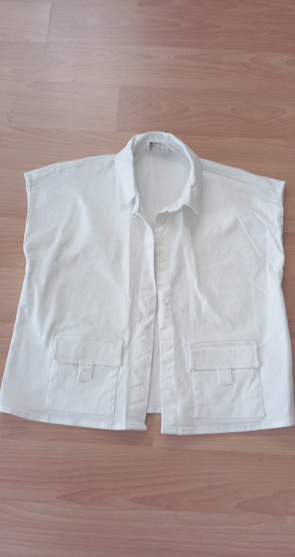 Düğmeli Kolsuz Beyaz Keten Kot Gömlek