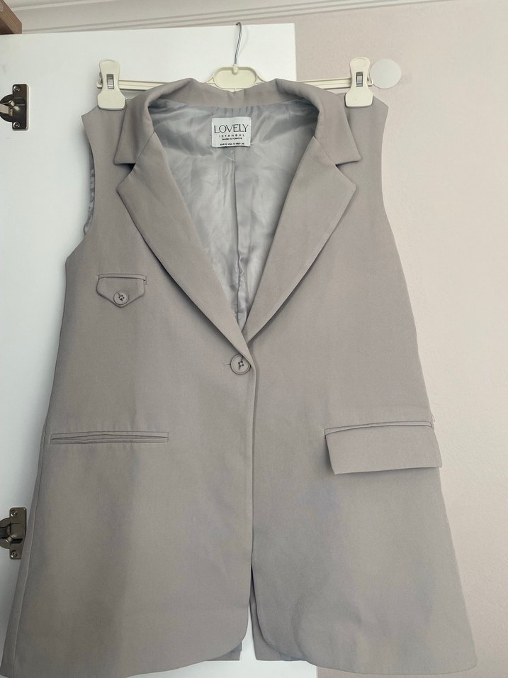 Düğmeli Kolsuz gri Kadın Blazer