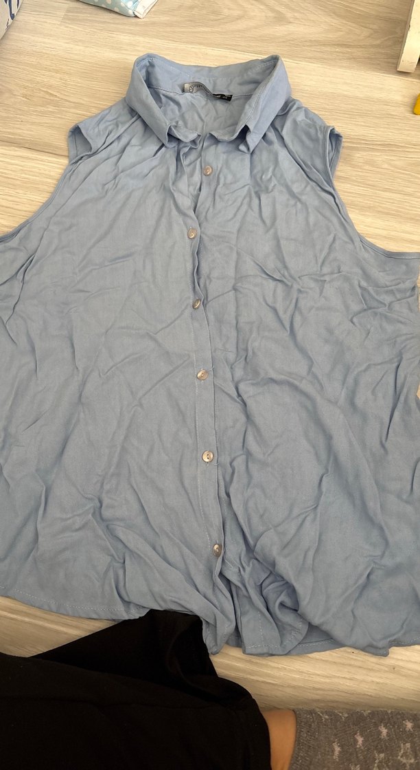 Düğmeli, kolsuz, yakalı mavi gömlek aynısının sarısı da var isteyene o da 50tl