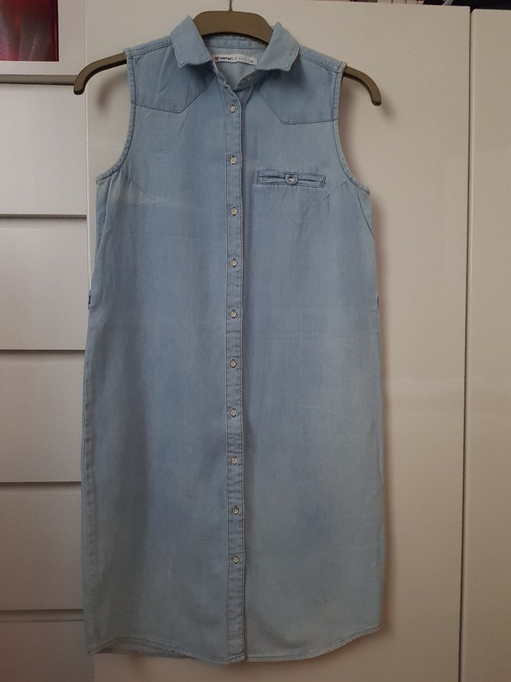 Düğmeli, kolsuz midi kot elbise, ince kot kumaşıdır, yakalı ve düzenli kesimlidir. Küçük göğüs cebi ile rahat bir görünüm sunar. #kotonmidikotelbise #midikotelbise