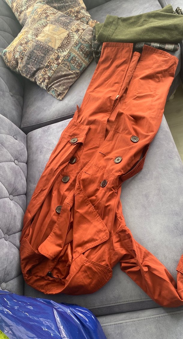Sentetik kumaştan uzun, kolsuz kadın trençkot, düğmeli ve dar kesimlidir. Çentikli yakası ve desensiz modeliyle gündelik sokak stiline uygundur. Rengi kahverengidir.