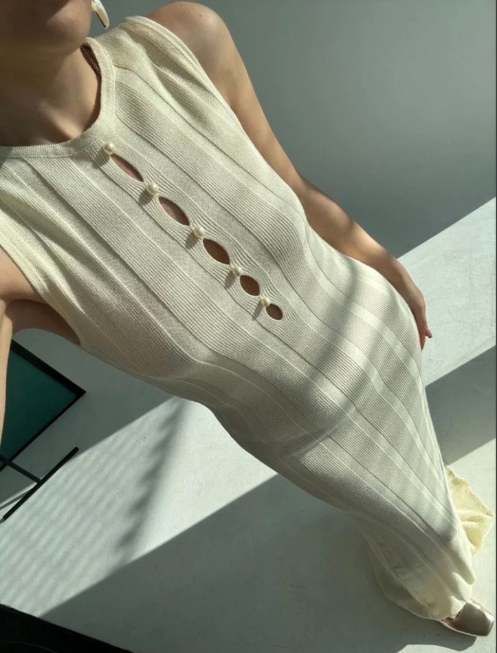 Düğmeli Kolsuz Uzun örme Elbise