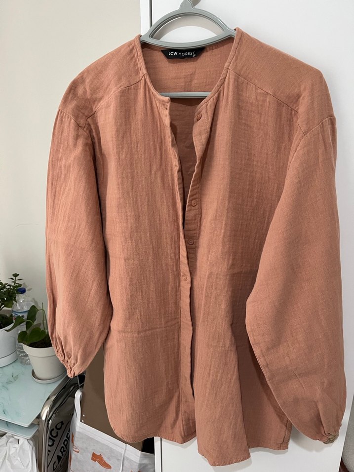 Düğmeli kolu lastikli müslin gömlek tunik de olabilir