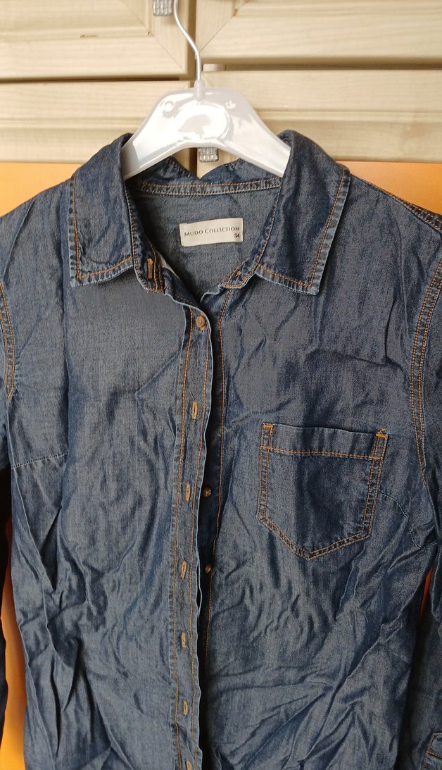 Dar kesim kot gömlek, kısa kollu ve yakalıdır. Mavi renkte, düğmeli ve tek göğüs cebine sahiptir. Günlük kullanıma uygundur.