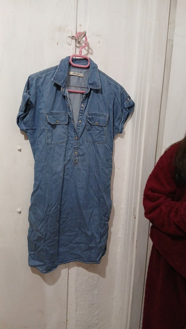 Düğmeli detaylara ve cep özelliklerine sahip, kısa kollu, yaka detaylı bol kesim kot midi elbise. Günlük rahat kullanıma uygundur.