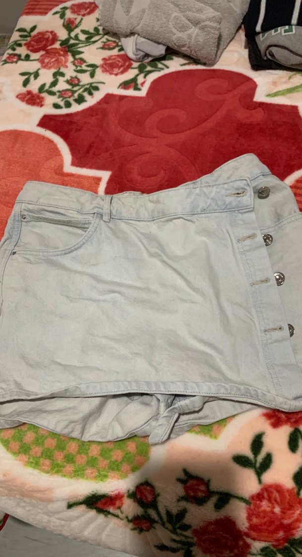 Gri renkte, düğmeli ve bol kesim kot şort. Mini boy uzunluğunda, günlük sokak tarzına uygun rahat bir model. Dügmesi ve fermuarlı bozuk yapılırsa herhangi başka bi sorunu yoktur