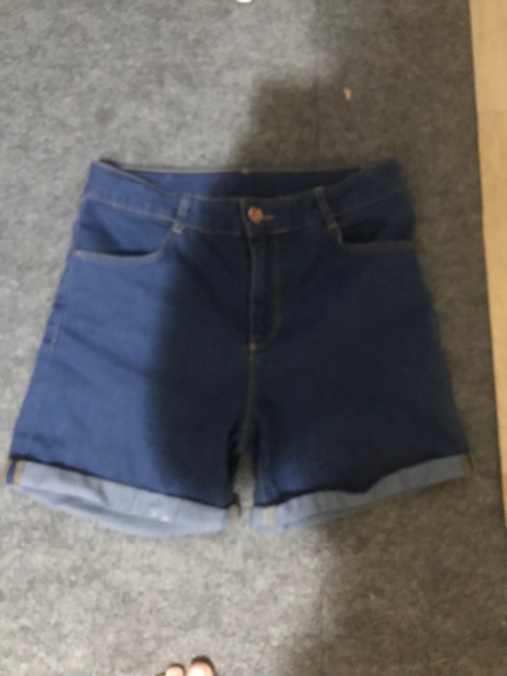 Düğmeli, fitted kesim kadın kot şort, kısa boyda. Günlük kullanım için uygun, düz mavi renkte, sokak stiliyle uyumlu.