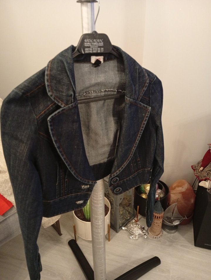 Düğmeli Koyu Gri Denim Kadın Ceket