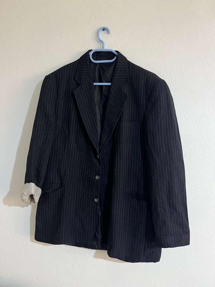 Kadınlar için düğmeli, normal kesim ve keten kumaştan yapılmış, yakası kesimli, uzun kollu koyu gri blazer ceket. Ofis ve günlük kullanıma uygundur.