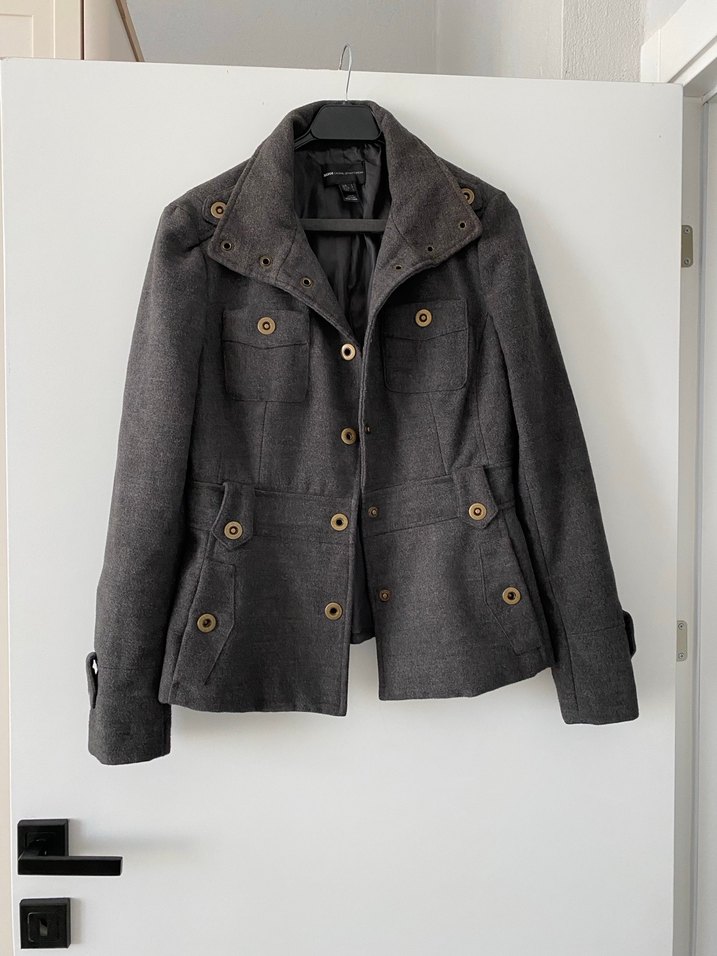 Düğmeli Koyu Gri Kadın Kaban