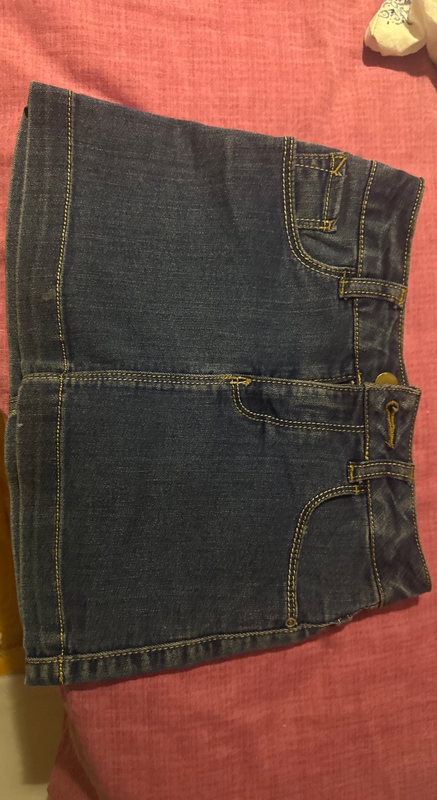 Düğmeli Koyu Kahverengi Denim Mini Etek
