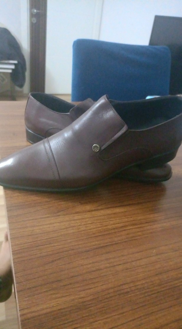 Düğmeli tasarıma sahip koyu kahverengi deri erkek klasik ayakkabı, iş ve ofis ortamları için uygundur. Modern ve desen içermeyen şık bir görünüme sahiptir. hakiki derindir eşime küçük geldi hediyeydi kösele taban kalite diyorum