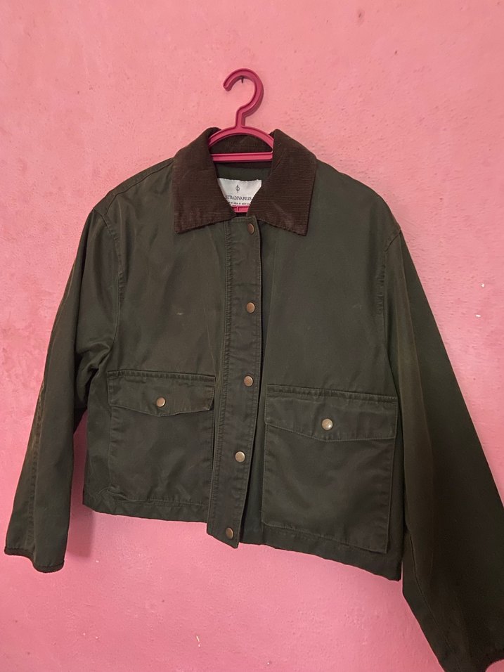 Düğmeli önü ve kesik yakası olan koyu kahverengi kadın ceketi, rahat kesim ve uzun kolludur. Yumuşak süet malzemeden yapılmıştır, gündelik sokak stili için uygundur. Güncel fiyatı 2990₺idi