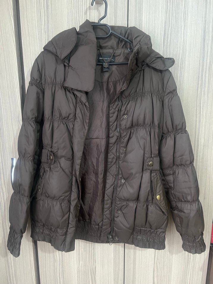 Düğmeli Koyu Kahverengi Kadın Kışlık Mont