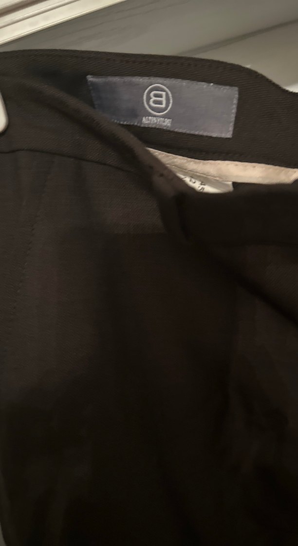 Düğmeli, midi boy koyu kahve rengi kumaş pantolon. Normal kesim ve sentetik kumaştan, ofis ve sokak modasına uygun şık tasarım.