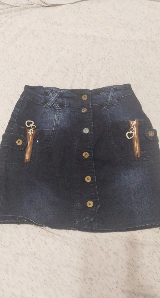 Düğmeli Koyu Kahverengi Mini Denim Etek 10 yas