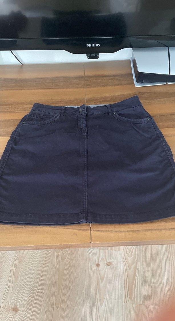 Düğmeli, koyu kırmızı renkte, midi boy, bol kesim kot etek. Günlük rahat kullanıma uygun. Lacivert