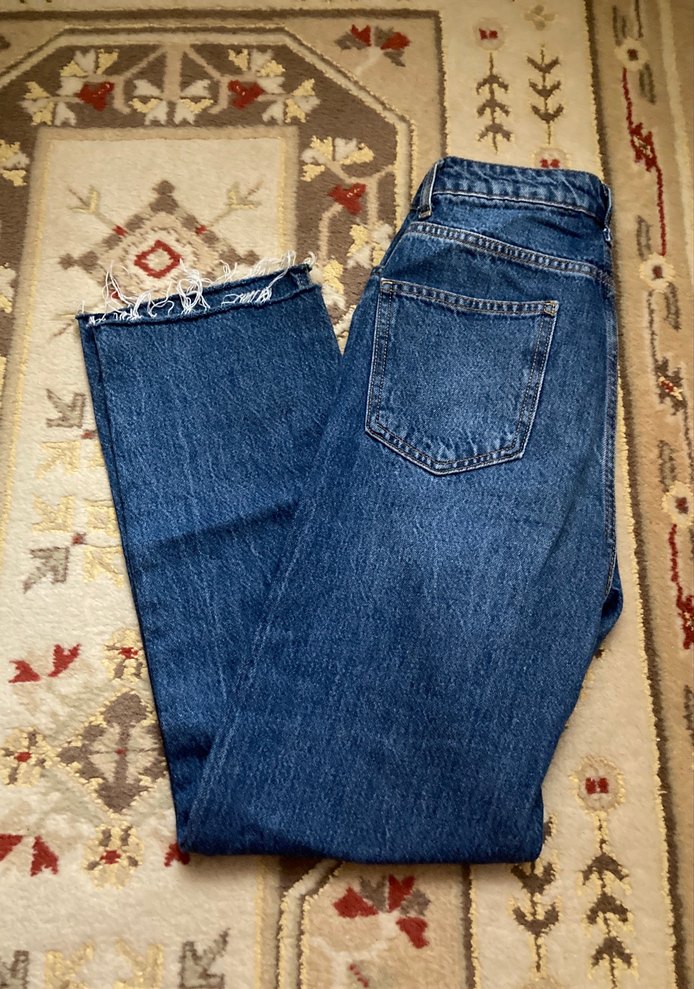 Düğmeli, bağlama desenli koyu mavi denim kot, sadece kat yerinden paçasını kestim boyu kısaltılmadı ve iki kere falan giyilmiştir maksimum