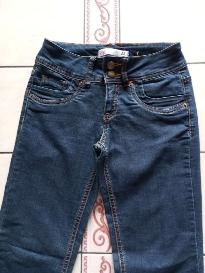 Düğmeli, koyu mavi, dar kesim geniş paça kadın kot pantolon, günlük rahat sokak stili için uygundur. ✨
