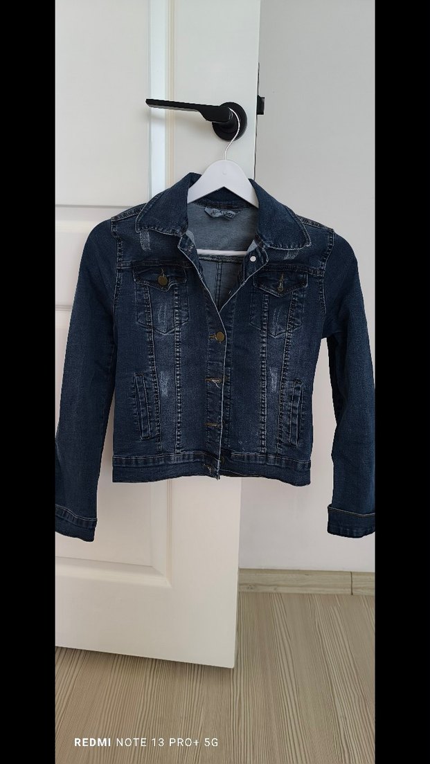 Düğmeli, uzun kollu ve kesimli yapıya sahip koyu mavi denim ceket. Notlu yaka detayı ile gündelik sokak stiline uygundur. sadece bir kez iki saatliğine giyildi.tesetturlu olduğum için kombinleyemedim öylece dolata durdu.likrali çok kalitelidir