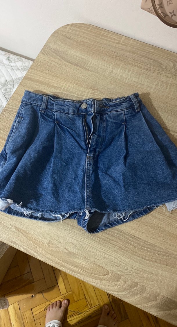 Düğmeli, bol kesim koyu mavi kadın mini denim şort, günlük kullanıma uygundur.