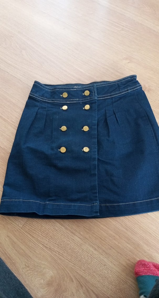 Düğmeli Koyu Mavi Mini Denim Etek