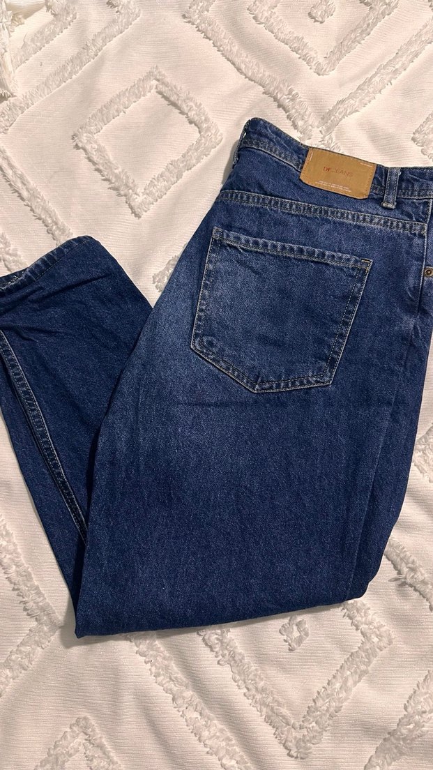 Düğmeli Koyu Mavi Rahat Kesim erkek Kot Pantolon