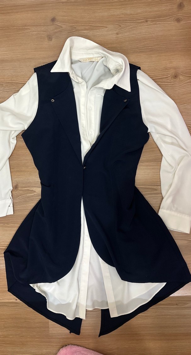 Düğmeli Koyu Midi Kadın gömlek Yelek