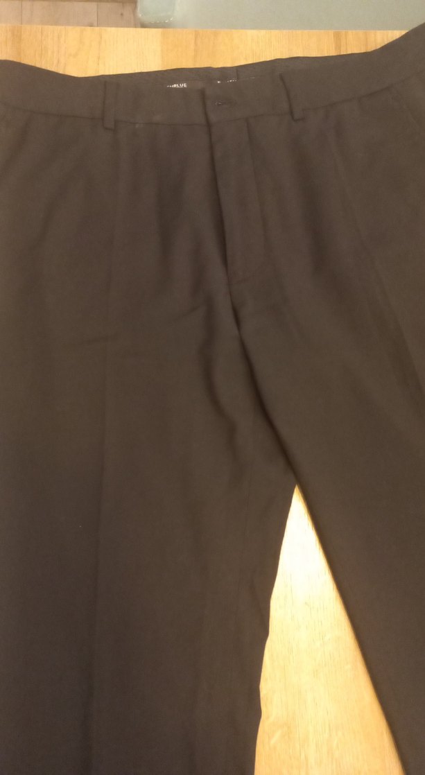 Düğmeli, koyu siyah renkli, ipeksi dokulu erkek pantolonu. Normal boy ve rahat kesime sahip, iş ortamı için uygundur.