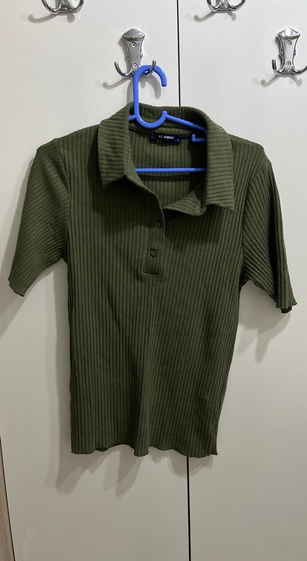 Düğmeli, yakalı ve kısa kollu, fit kesim koyu yeşil erkek polo tişört. Ribanalı dokusu ile günlük rahat sokak stiline uygundur.