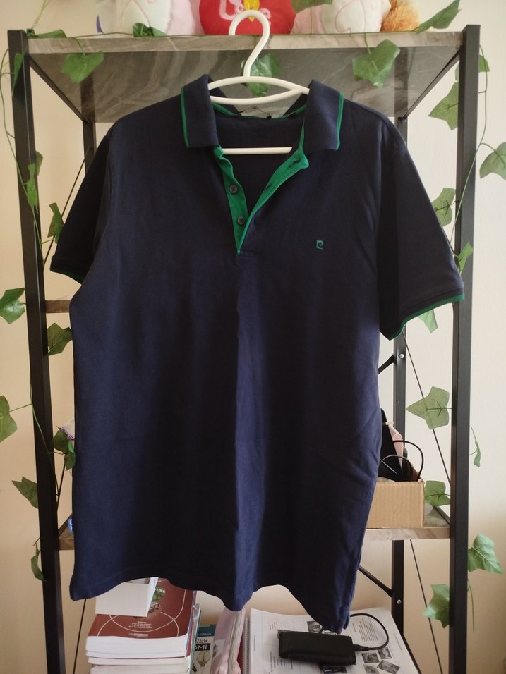 Düğmeli, kısa kollu, koyu yeşil erkek polo tişört, sentetik kumaştan ve regular fit kesimde.Pierre cardin marka.
