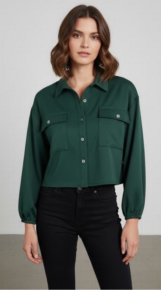 Düğmeli Koyu Yeşil Kadın Gömlek