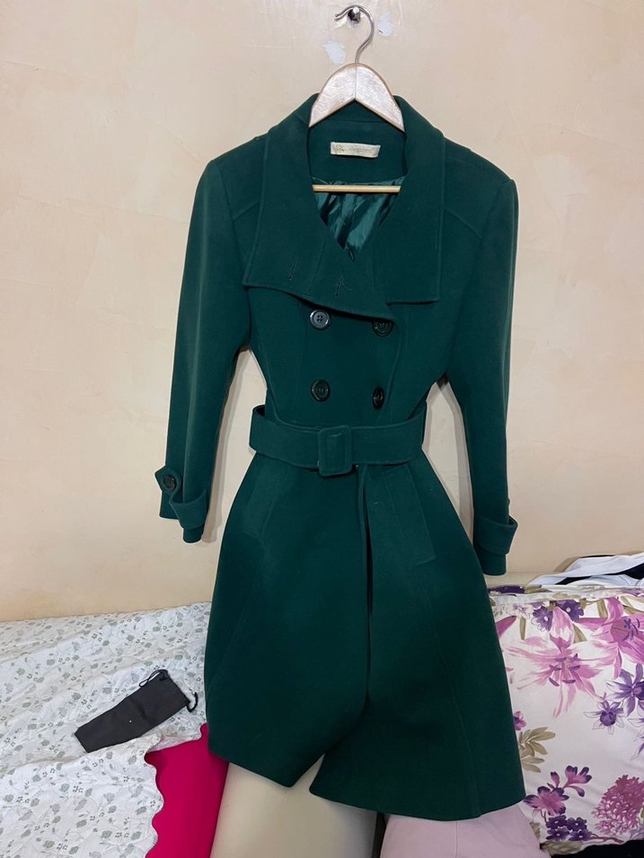 40 beden yeşil uzun kaban kemerli hiç giyilmedi yeni kollarında da kemer mevcut üste çok şükür duruyor yeni sıfır üründür sadece dolapta etiket kopmuştur Kadıköy'de mağazadan altına şu anda fiyatları 2500 TL 3.000 TL arasında da Alana hayırlı uğurlu olsun