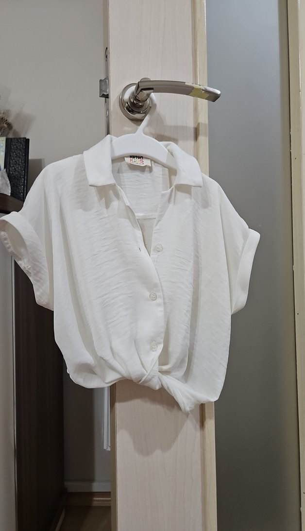 düğmeli krem crop gömlek yeşil şort