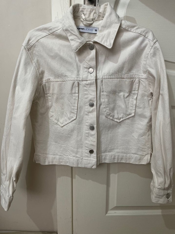 Düğmeli Krem Kadın Kot Ceketi