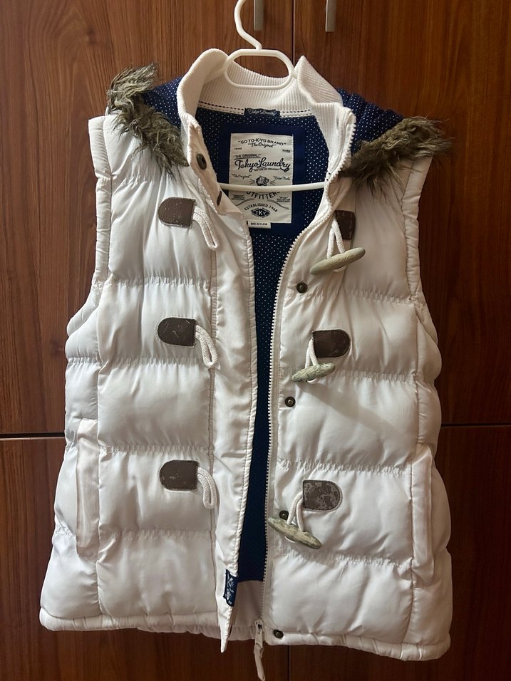 Newyork’tan satın aldım. Pamuklu, düğmeli, yakalı beyaz kadın yelek. Fitted kesim, midi boy, rahat ve gündelik sokak stili için uygundur. Desensiz ve kolsuz tasarım.