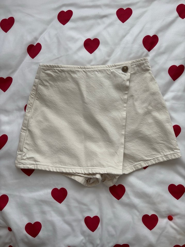 Yumuşak pamuklu kumaştan yapılmış, düğmeli, mini şort etek. Günlük kullanıma uygun sade ve minimalist tasarım. Ön kapağı özel bölgeyi kapatır. Şort alttan görünmez. Staj için almıştım çok rahat ve kolay kombinleniyor.