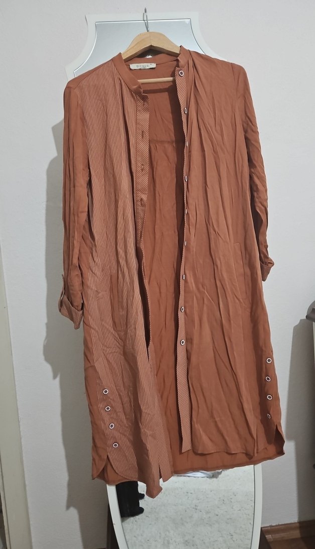 Düğmeli kremit rengi Uzun tensel Tunik