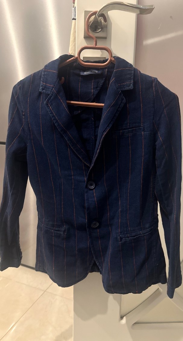 Lacivert kumaştan, düğmeli ve kesimli yakalı bu ceket, regular fit, uzun kollu ve normal boydadır.