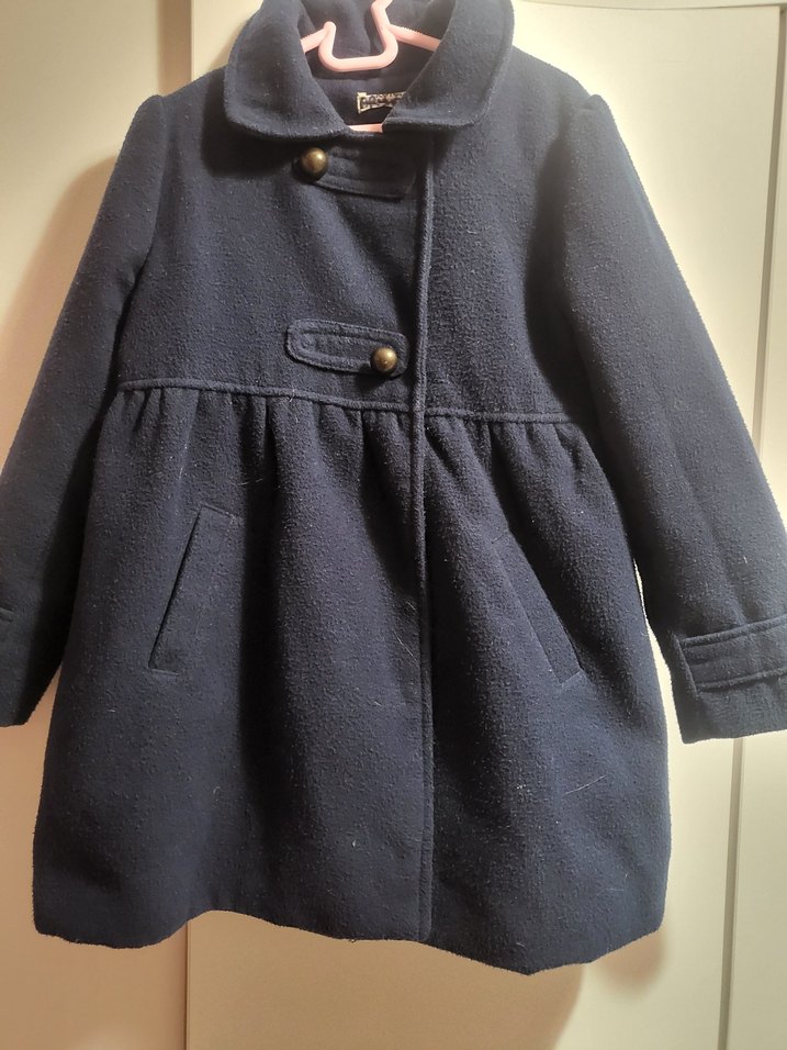 Düğmeli Lacivert çocuk kaşe Midi Kaban