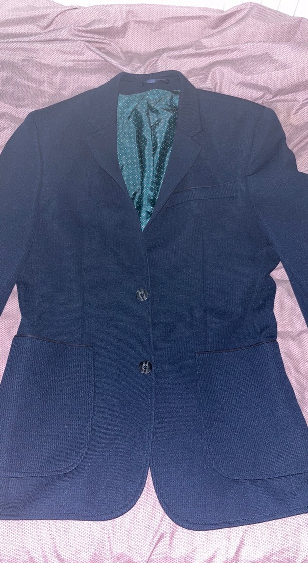 Düğmeli, normal boyda, lacivert erkek takım ceketi. Notch yaka ve uzun kollu, cep detaylı, ofis ve günlük kullanıma uygun.