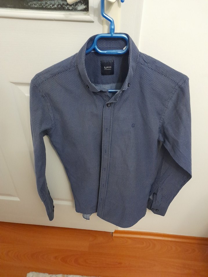 Düğmeli, uzun kollu, yakalı ve regular fit kesime sahip erkek denim gömlek. Lacivert-gri renkte, günlük kullanıma uygun rahat bir tarz sunar.