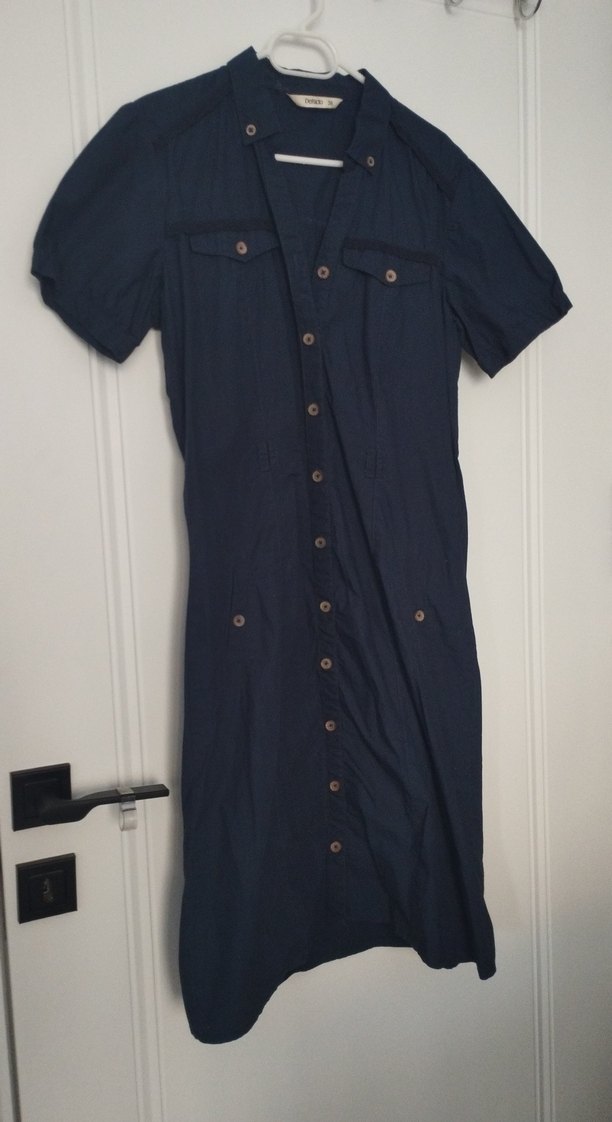 Düğmeli Lacivert Denim Kadın Elbise - Görsel 1