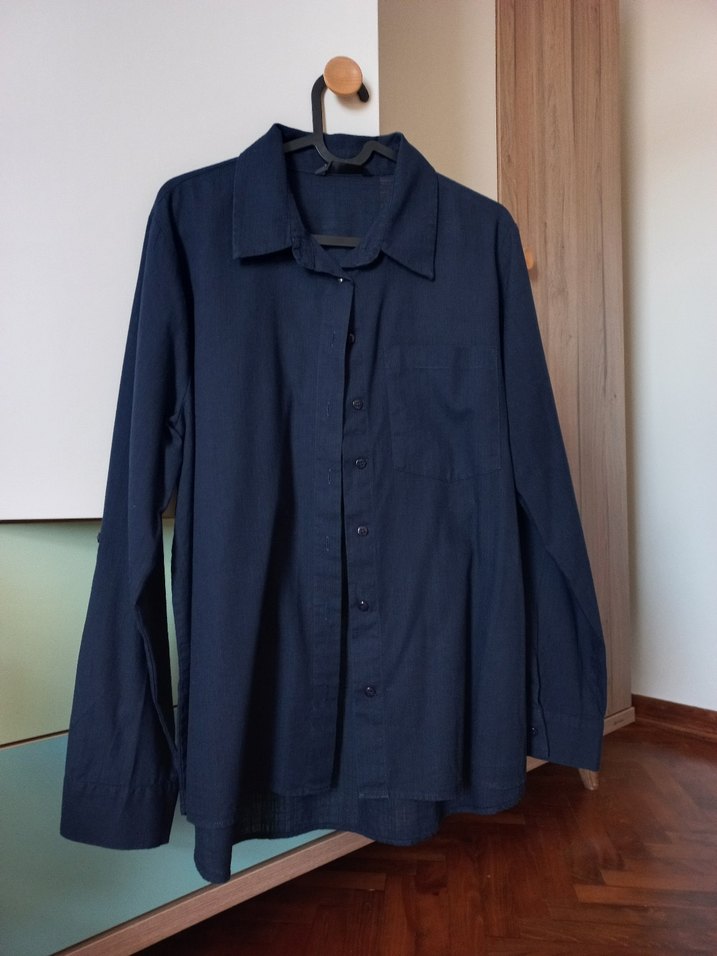 Düğmeli ve kesik yaka detaylı, uzun kollu denim kadın gömleği. Rahat kesimi ve normal uzunluğuyla ofis için uygundur. Düz ve koyu mavi renktedir. Lacivert Keten Pamuk Gömlek. 1-2 kere giyildi ✨️