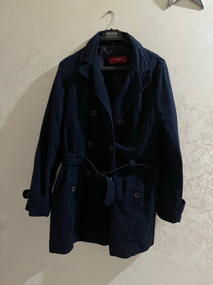 Düğmeli ön kısmı ve kesik yaka tipi olan bu kadın trençkotu, mavi denim kumaştan üretilmiştir. Uzun kollu, normal kesim ve midi boyda, günlük kullanım için klasik tarzda bir parçadır.